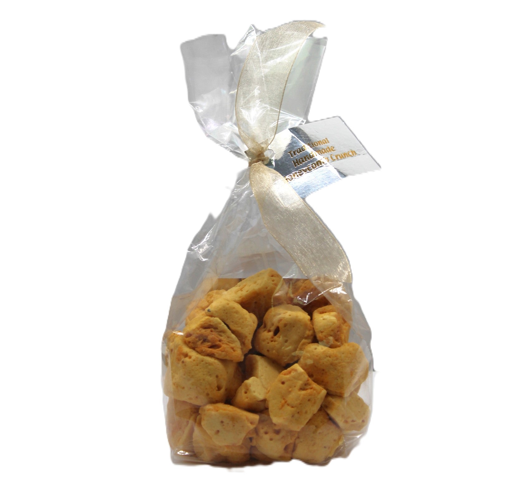 An assortment of handmade speciality honeycomb crunch in ribbon gift bag.