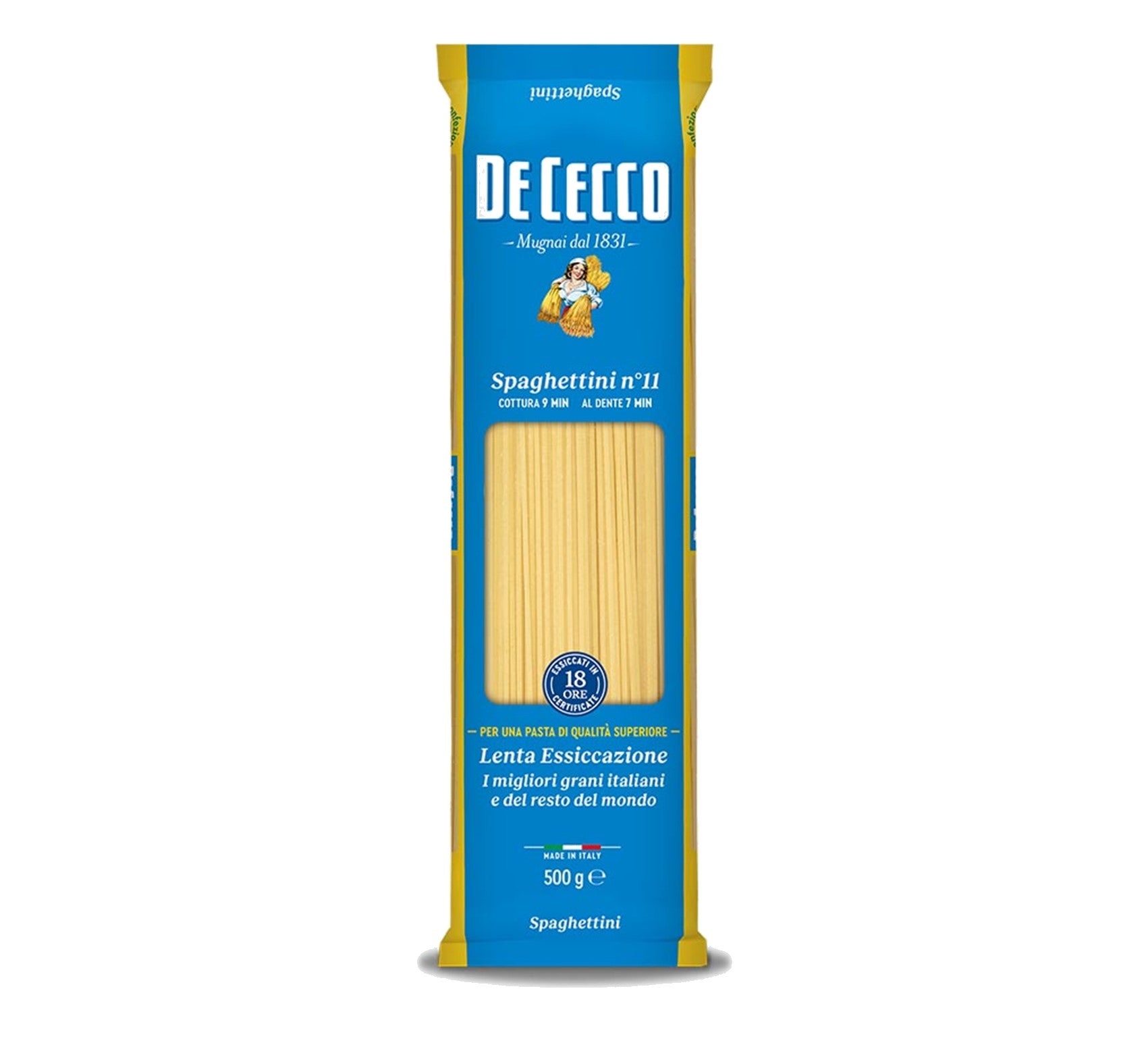 Spaghettini are a smaller, delicious variation of the classic Spaghetti and this type of pasta comes from the south of Italy, from Naples in particular. Hot or cold sauces based on fresh tomatoes, vegetables or aromatic herbs are the best way to enjoy this type of pasta. It is also very good with sauces that are quick to prepare with extra virgin olive oil and a dash of garlic, red pepper and anchovies. Spaghettini are also excellent served with shellfish and seafood sauces.