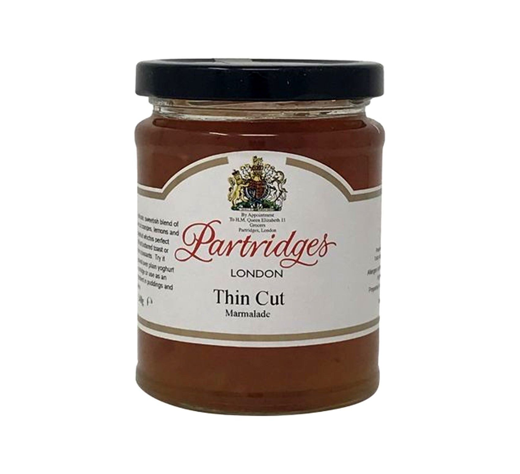 Partridges marmalades and preserves are handmade in small batches, with the fruit being stirred and poured by hand (this ensures more whole fruit ends up in the jar!). Partridges Thin Cut Marmalade is a delicate marmalade, light on peel for a smoother texture.