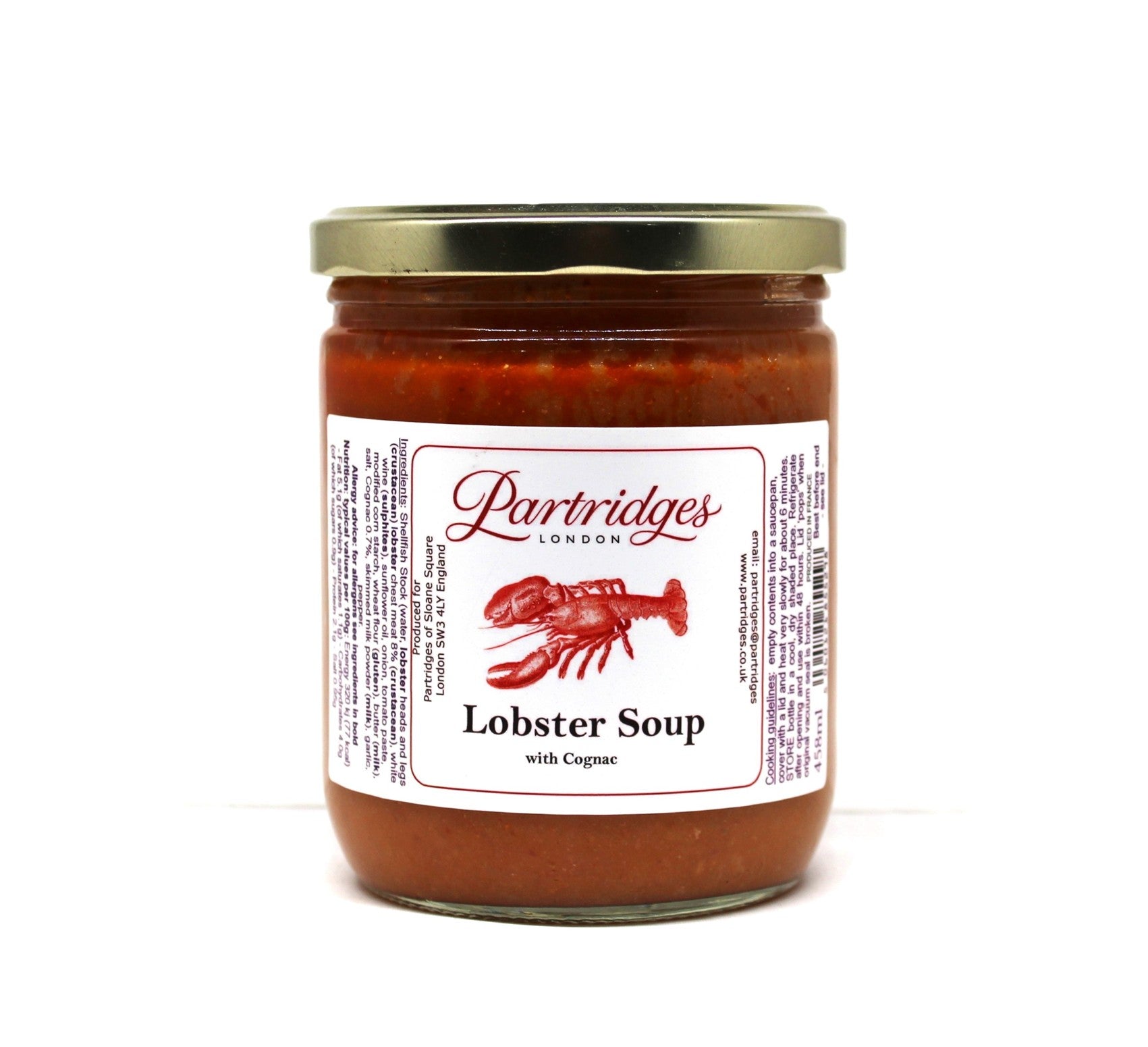 Ingredients: Shellfish Stock (Water, Langoustine, White Wine (Sulphites), Lobster (Crustacean) 10%, Sunflower Oil, Onions, Tomato Concentrate, Modified Corn Starch, Wheat Flour (Gluten), Butter (Milk), Salt, Cognac 1%, Milk Powder (Milk), Garlic, Pepper.
