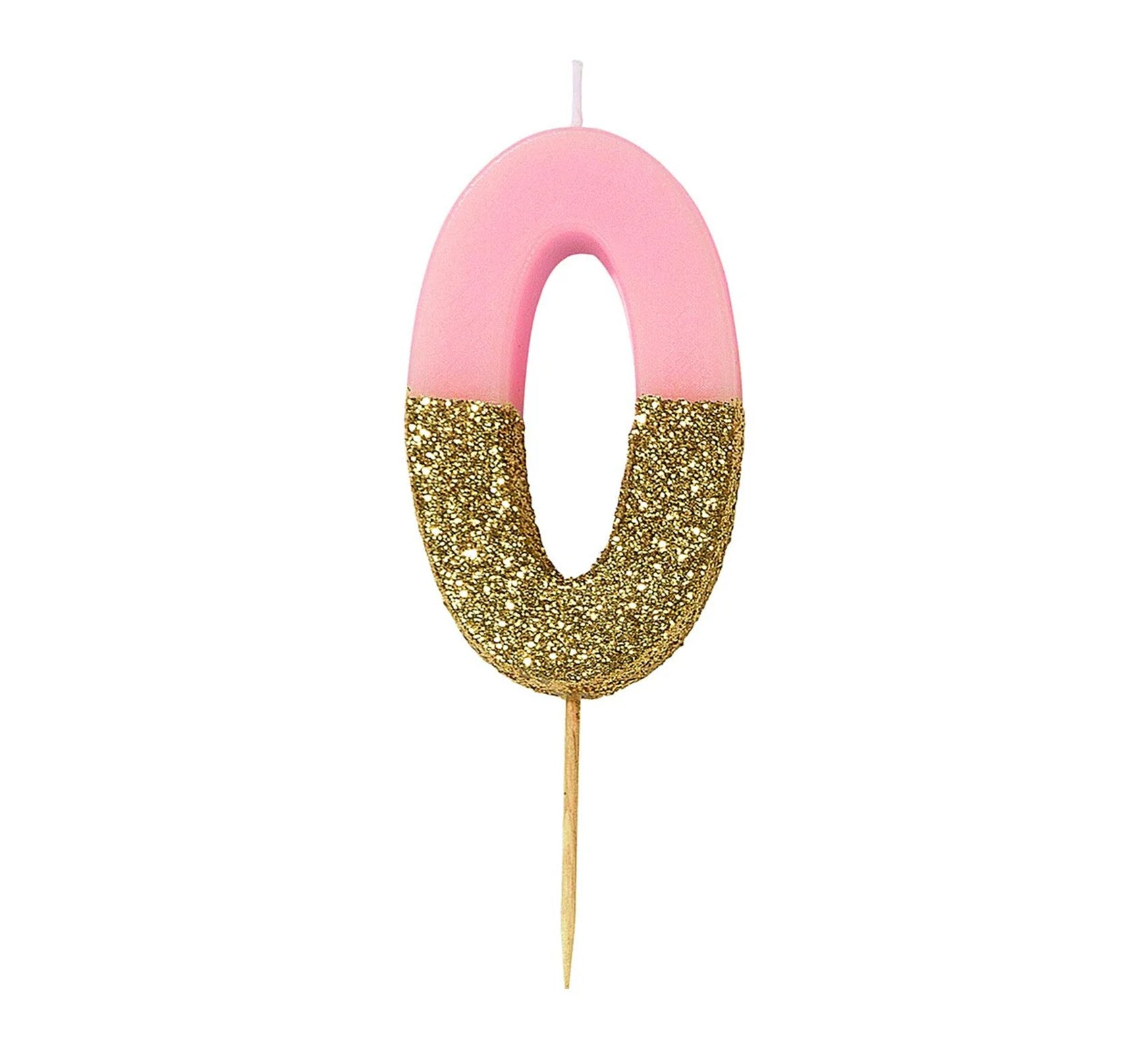 Talking Tables Pink & Gold Glitter Number Candle - 0